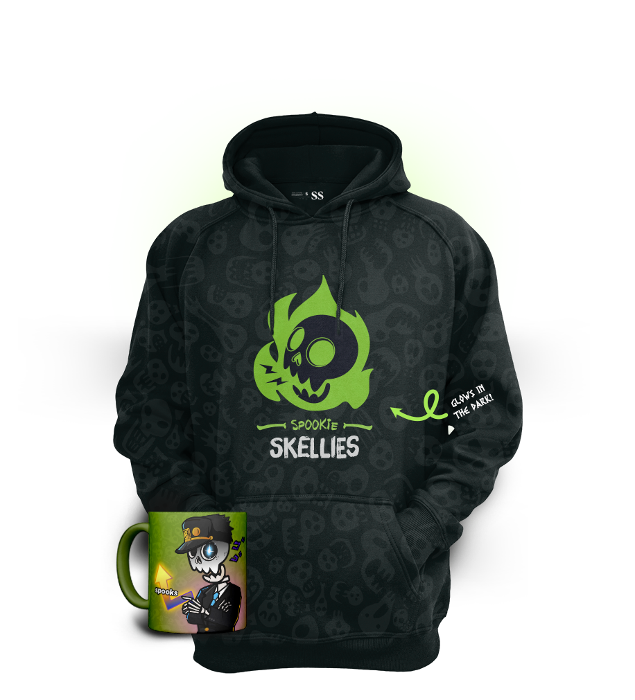If the Spookie Skellies are a hit, Ideas for a limited edition custom merch (hoodies, coffee mugs, hats, coins etc) will be looked at. We would love to design personalized merch with your own Spookie Skelly!